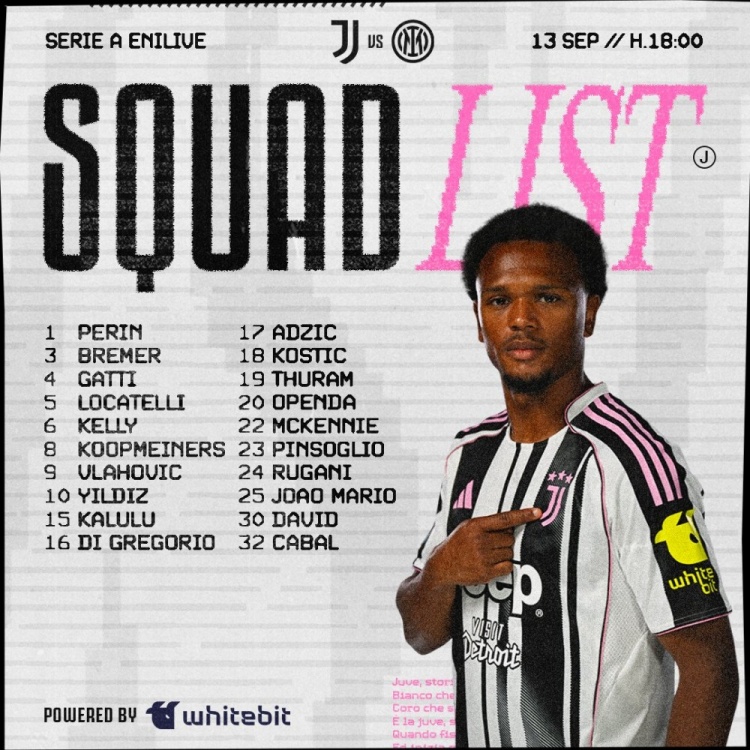 9月13日訊 北京時間明天凌晨0點(diǎn),尤文將在意甲第三輪比賽中主場對陣國米,尤文公布了此役的球員名單。