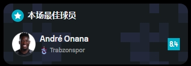 09月15日訊 土超第5輪,費(fèi)內(nèi)巴切1-0戰(zhàn)勝10人特拉布宗體育,為特拉布宗體育上演首秀的奧納納本場(chǎng)發(fā)揮出色。