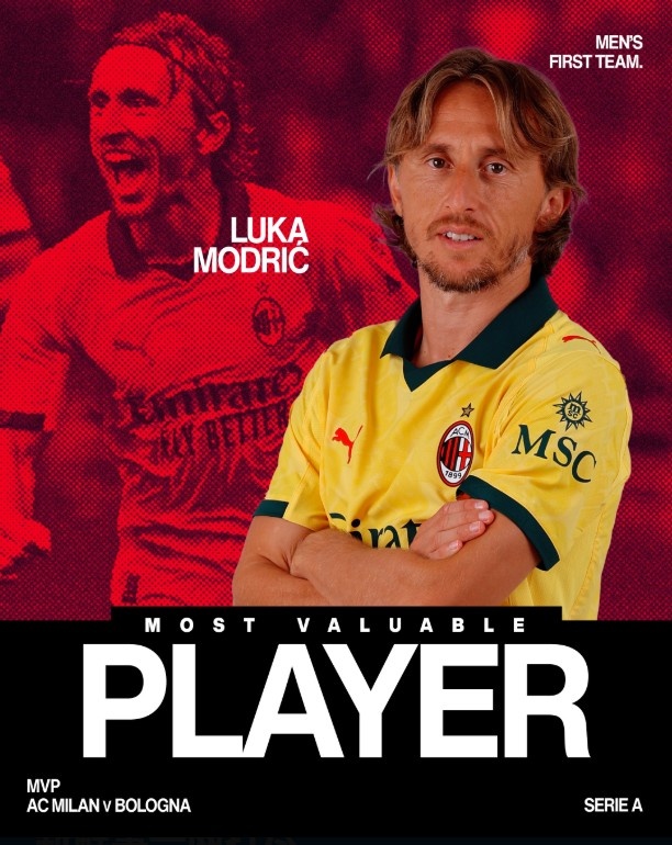 9月15日訊 米蘭官方消息,莫德里奇當選米蘭1-0博洛尼亞隊內最佳。