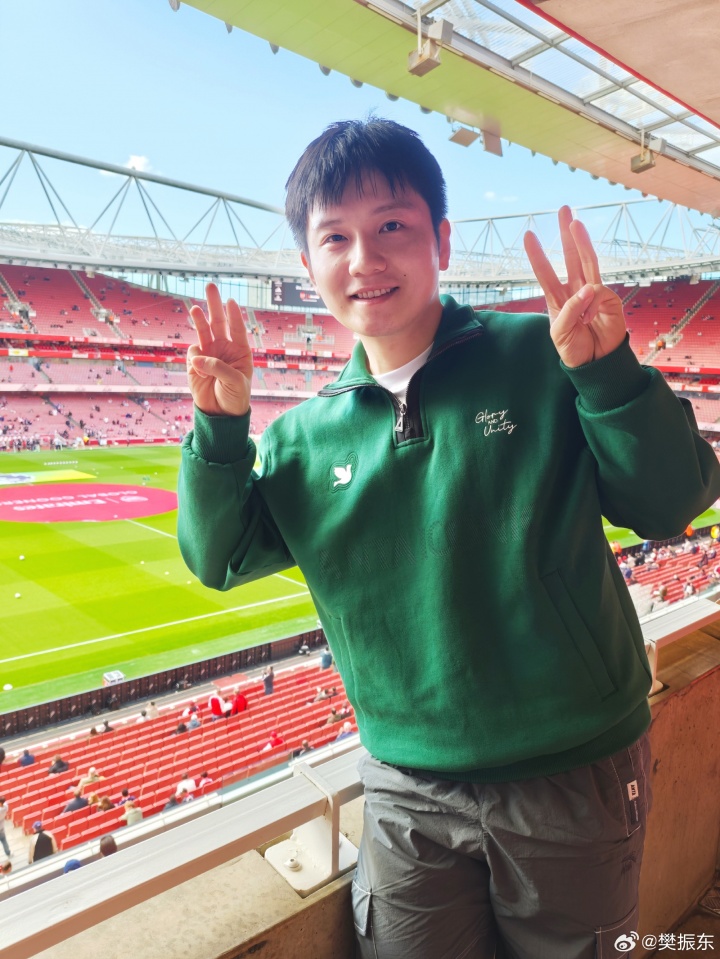 09月22日訊 昨晚英超第5輪焦點戰(zhàn),阿森納主場1-1戰(zhàn)平曼城。目前在德國俱樂部薩爾布呂肯乒乓球隊效力的樊振東現(xiàn)場觀看了這場比賽,并在社媒中分享了觀賽感受。