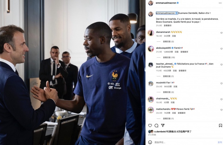 國家的驕傲!馬克龍社媒祝賀登貝萊:金球背后是天賦、努力和堅持