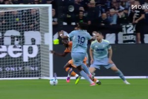 第19分鐘,凱夫倫-圖拉姆遠(yuǎn)射折線后稍稍偏出立柱?!?/p>