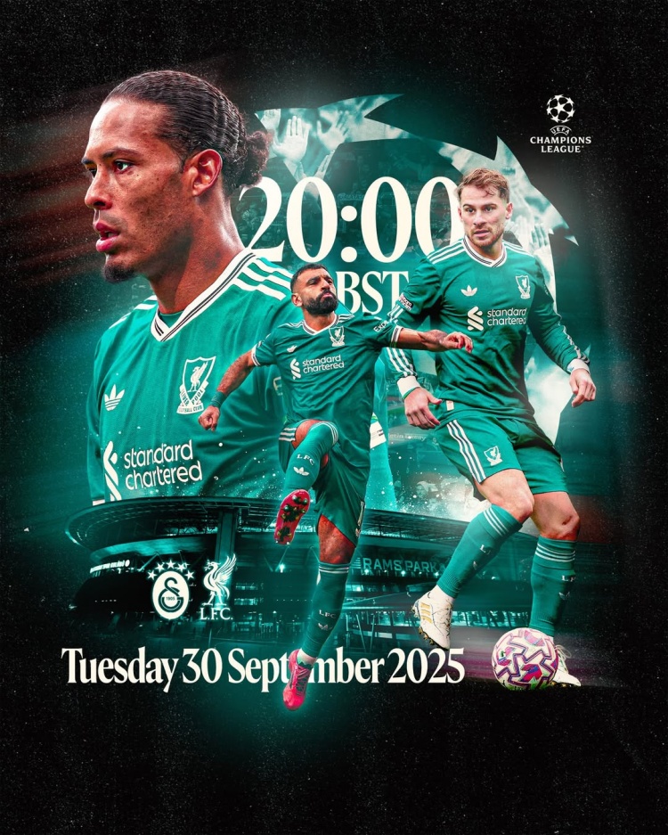 利物浦官方更新社媒動(dòng)態(tài),曬出為此役制作的海報(bào),薩拉赫、范迪克、麥卡利斯特出鏡。