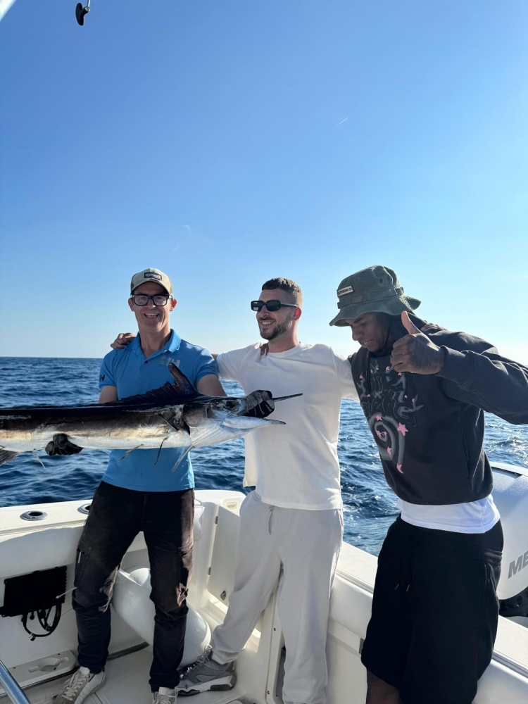 拉什福德社媒曬出海釣的照片,他拿著自己釣上的魚,露出燦爛笑容。