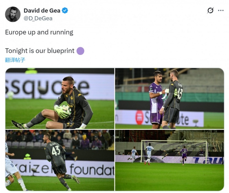 德赫亞社媒曬出比賽照片,并寫道:“歐戰(zhàn)征程開啟,今晚的表現(xiàn)就是我們的藍(lán)圖?!?/p>