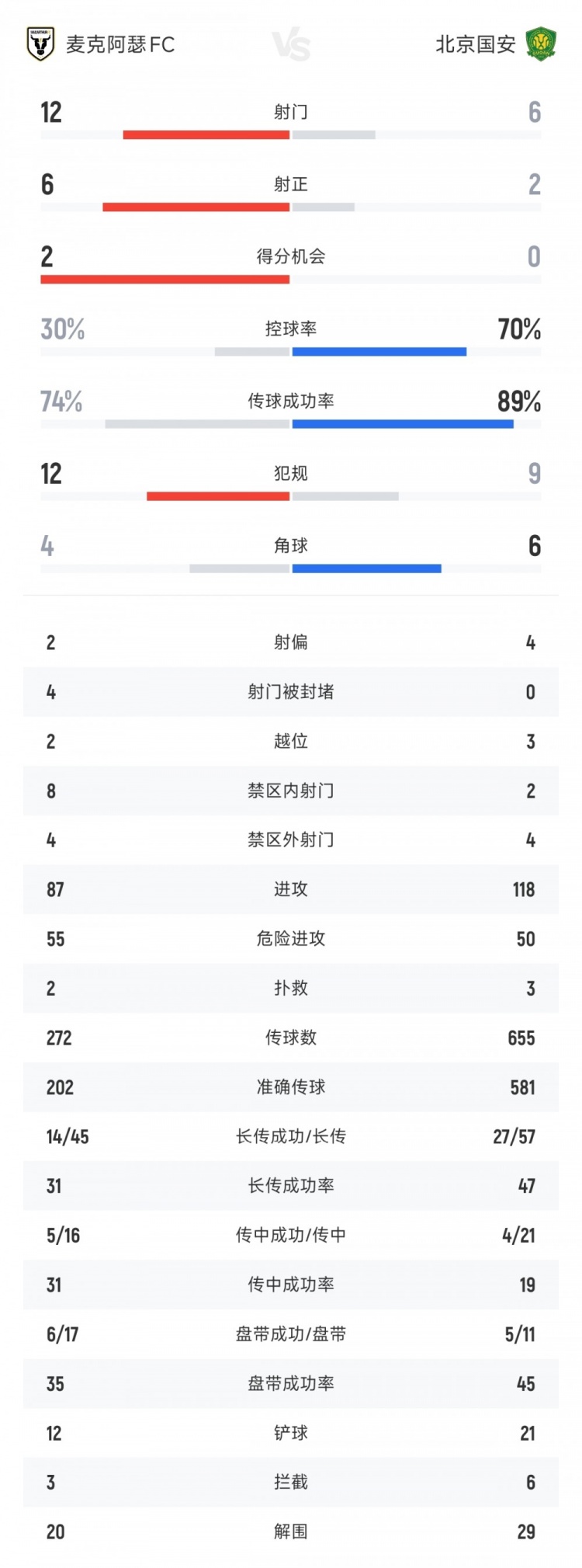 3-0國安!麥克阿瑟主帥:對手很優(yōu)秀,我們控球少但能限制對方