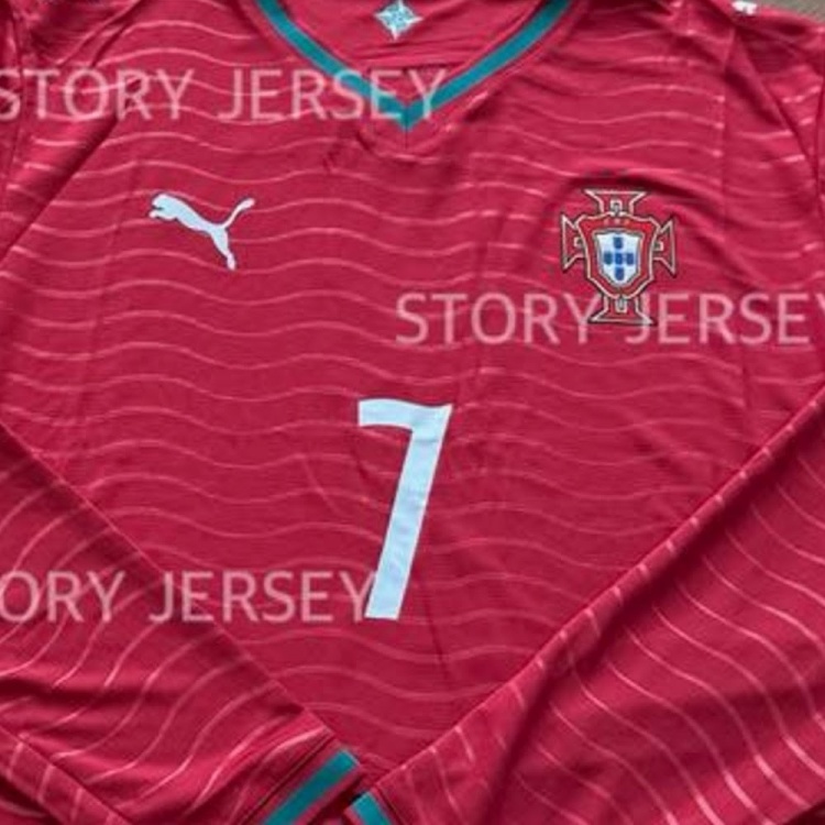 這種波浪形的設(shè)計(jì)靈感幾乎可以肯定源自葡萄牙2026年主場(chǎng)球衣上的波浪圖案。這使得球衣設(shè)計(jì)與字體之間形成了完美和諧的搭配。