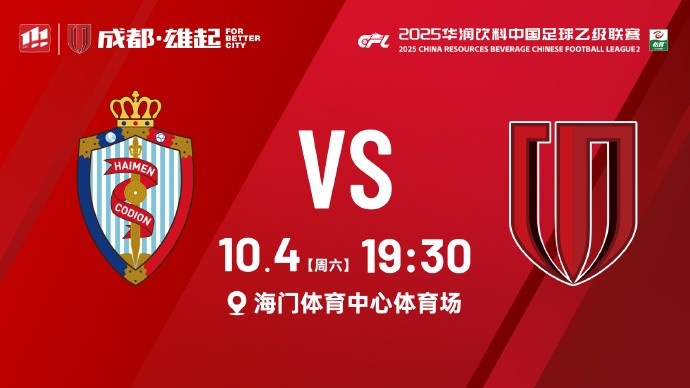 比賽日2025華潤飲料中乙聯(lián)賽 第28輪? 海門珂締緣 vs 成都蓉城B隊(duì)?? 10月4日(周六)19:30?? 海門體育中心體育場...
