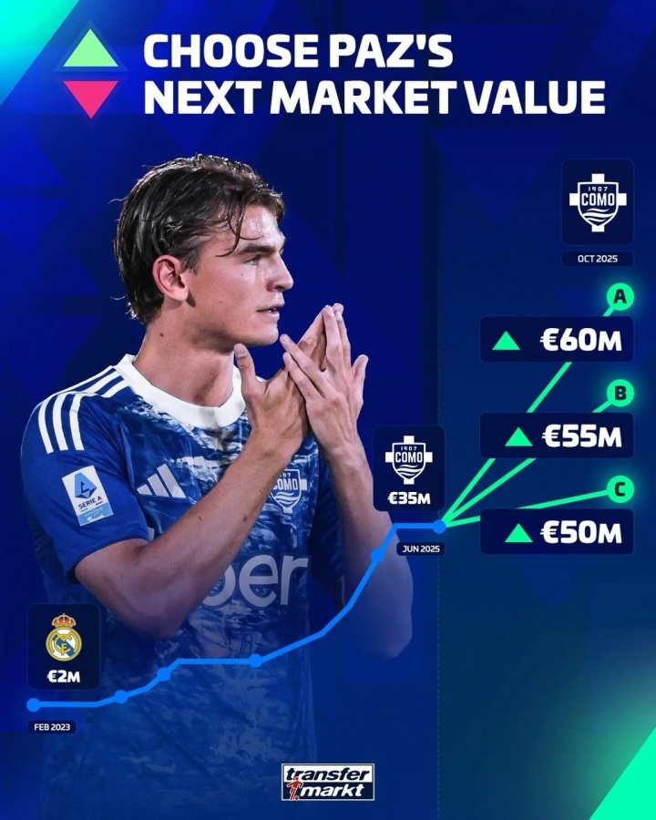 尼科-帕斯23年2月在皇馬時(shí)身價(jià)僅為200萬歐,本賽季尼科-帕斯為科莫出戰(zhàn)6次,數(shù)據(jù)為3球3助,現(xiàn)身價(jià)3500萬歐。