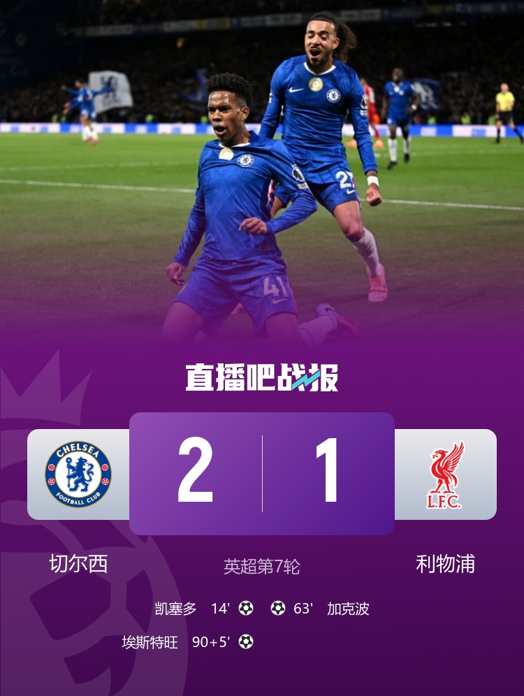切爾西2-1絕殺送利物浦三連敗 埃斯特旺補(bǔ)時(shí)絕殺凱塞多世界波