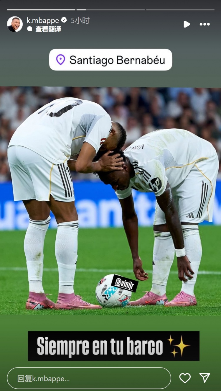 姆巴佩社媒曬出與維尼修斯的合照,配文:“永遠(yuǎn)與你同在(永遠(yuǎn)同舟共濟(jì))?!?/p>
