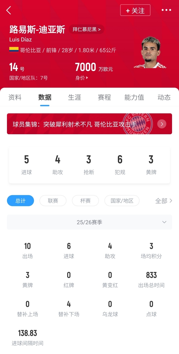 10場(chǎng)6球4助!TA:批評(píng)7000萬(wàn)簽迪亞斯?但他是拜仁能簽的最佳人選