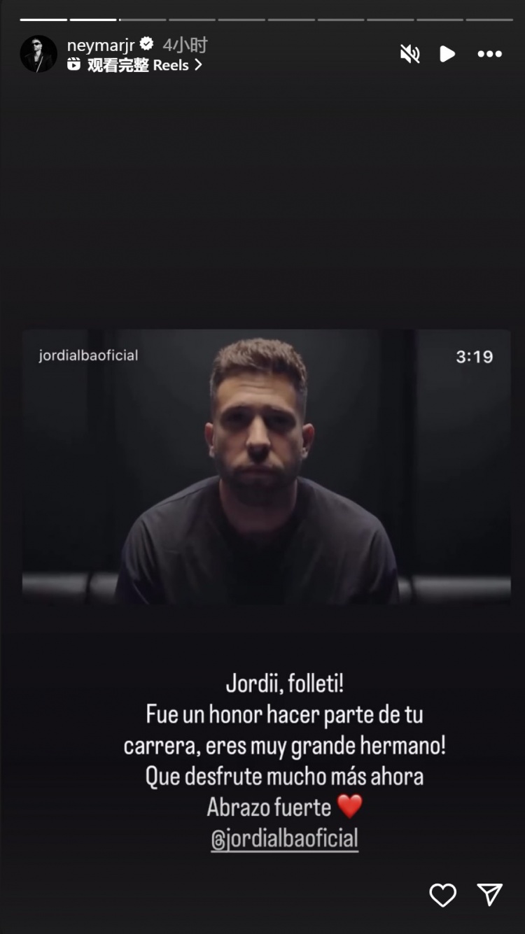 10月8日訊 阿爾巴將在本賽季結(jié)束后退役,前隊友內(nèi)馬爾社媒發(fā)文致敬。