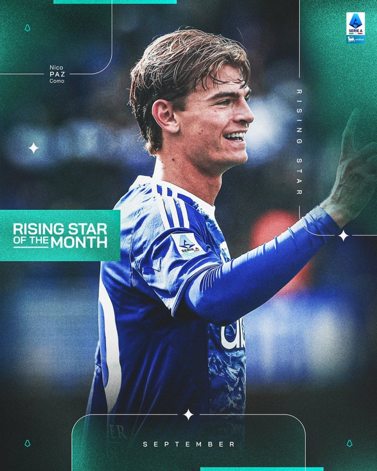 10月8日訊 意甲聯(lián)盟官方宣布,科莫中場(chǎng)帕斯當(dāng)選9月份最佳新星獎(jiǎng)。